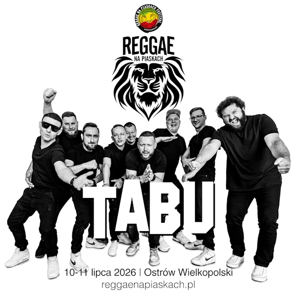 Tabu to dziś jeden z najpopularniejszych zespołów polskiego nurtu reggae, oferujący energetyczne koncerty gwarantującą znakomitą zabawę dla publiczności. Powstali w 2003 roku z inicjatywy Rafała Karwota i Marcina Suchego, a już w 2006 po raz pierwszy zagrali na RNP. W kolejnych latach wracali do Ostrowa kilkakrotnie. Teraz, po dłuższej przerwie, będziemy mogli znowu zaśpiewać razem „o jak dobrze cię widzieć, o jak dobrze cię słyszeć”!